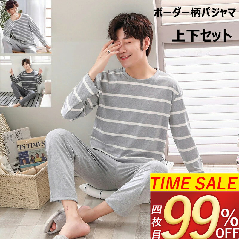 \SS!MAX'99%OFF/ 部屋着 メンズ パジャマ メンズ 寝巻き ルームウェア 薄手 長袖 上下セット ボーダー柄 肌触り パジャマメンズ 長ズボン ナイトウェア 入院 家着 おしゃれ 柔らかい ゆったり シンプル プレゼント ギフト 初夏 春 夏 秋 m l 2l 3l