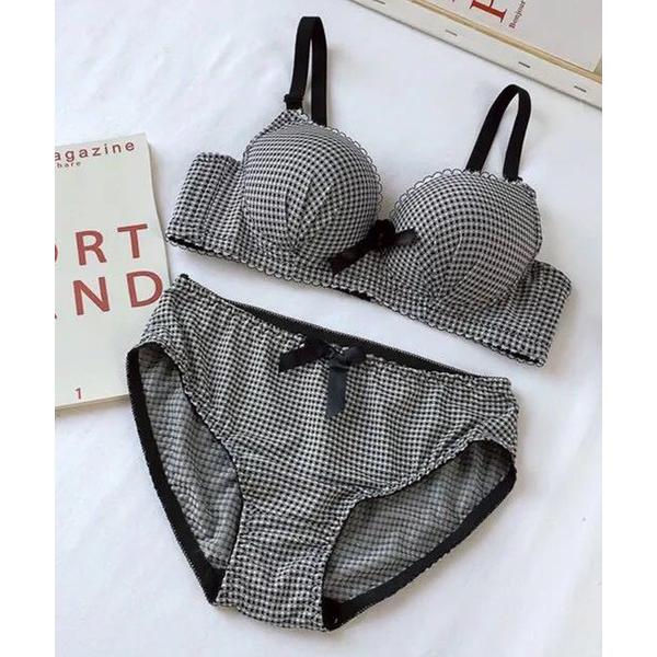 ブラジャー ショーツセット ギンガムチェック柄ノンワイヤー3/4カップブラ&ショーツセット