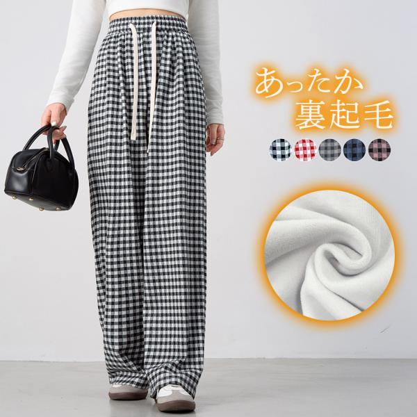 裏起毛 ルームウェア パンツ レディース ボトムス 防寒 保温 暖パン ロングパンツ ズボン 中厚手 チェック柄 バイカラー 黒 白 秋 冬