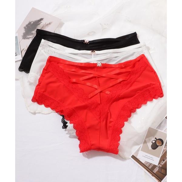 ショーツ 「3枚セット」ハイウエストバッククロスストラップショーツ