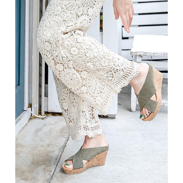 サンダル ふかふかクッションインソールのワイドクロスバンドウエッジサンダル レディース
