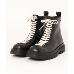 ブーツ 「ELLUV/エルヴ」+7cmボリュームヒール メタルアクセント レースアップスクエアトゥブーツ メンズ レディース