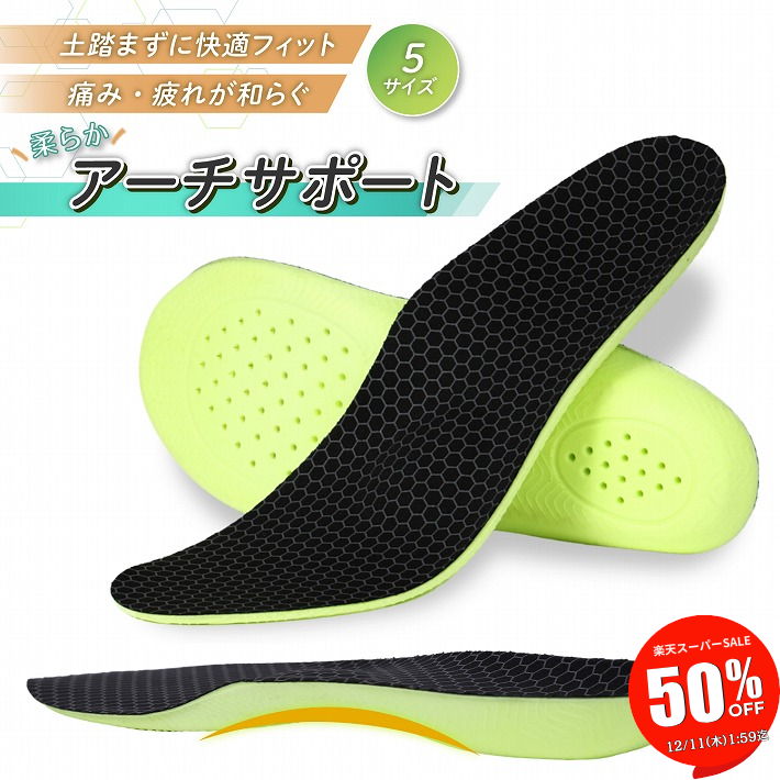 【SALE 50%OFF 11日1:59迄】 インソール 衝撃吸収 扁平足 偏平足 アーチサポーター アーチサポート 土踏まず サポート かかと PU レディース クッション スニーカー メンズ 靴 中敷き 足 疲れにくい 立ち 仕事 立ち仕事 ブラック /やわらかアーチサポート