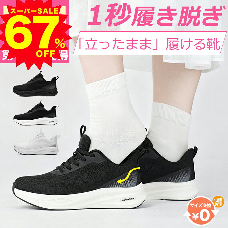 \スーパーSALE限定67%OFF/手を使わず履ける靴 スニーカー レディース メンズ スリッポン スリップイン 履きやすい 柔らかい 軽い 紐なし 屈曲性 履きやすい 歩きやすい 靴 ブラック 黒 ホワイト 仕事 運動 外反母趾 通勤 厚底 軽量 通気