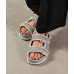 サンダル パールエンベリシュッド フラットフォームサンダル レディース
