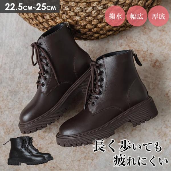 ブーツ ラウンドトゥ 厚底 レースアップ ショート ブーツ レディース