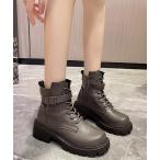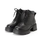 ブーツ レザー調ショート丈バックレースアップ厚底ブーツ レディース