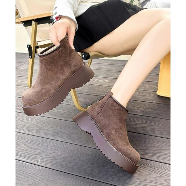 ブーツ スエード調 ムートン 厚底 ショート ブーツ レディース