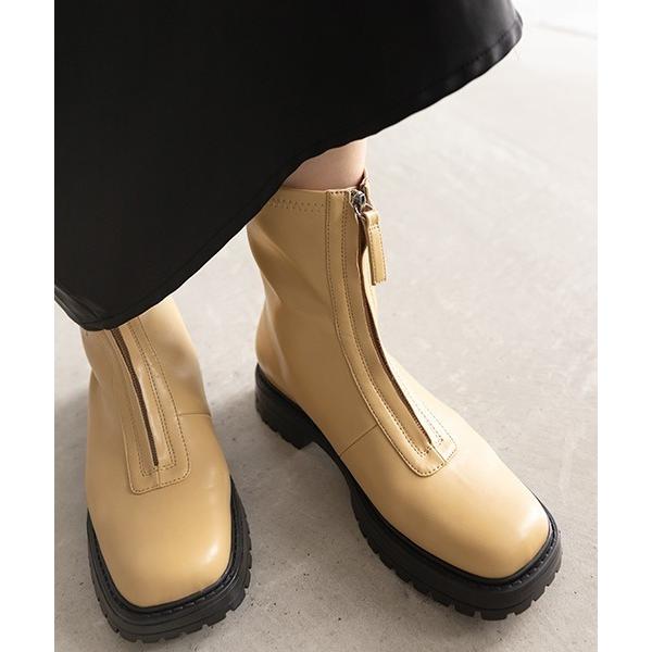 ブーツ Per sist ence/パーシエンス フェイクスムースレザーファスナー付きミドルブーツ レディース