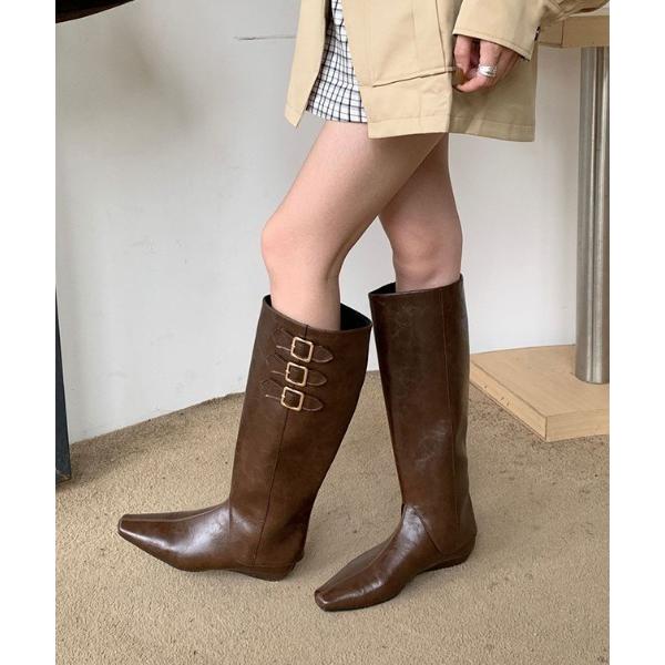 【70%OFF→990円!対象3点で!1点60%OFF!クーポンで!】 ニーハイブーツ ローヒール 大きいサイズ ペタンコ ロングブーツ レディース 疲れない スウェード インヒール シューズ送料無料 ^bo-596^ セール