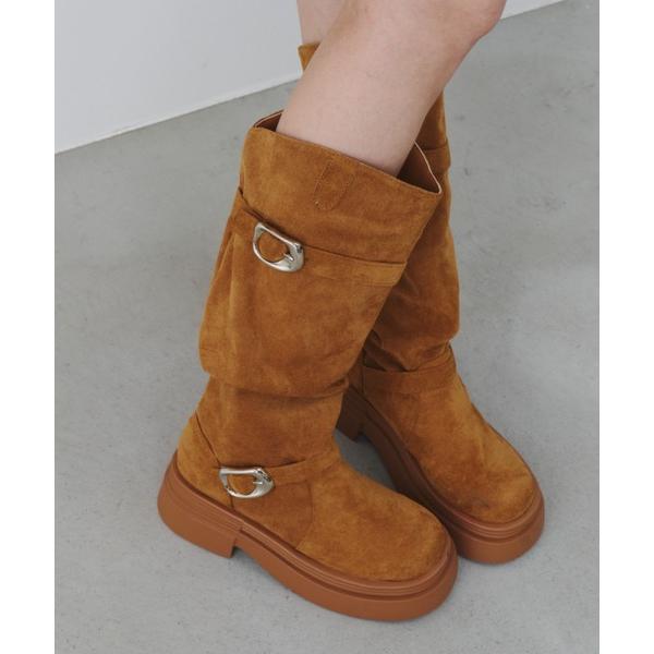 ブーツ ダブルバックル付き厚底スエードエンジニアブーツ レディース