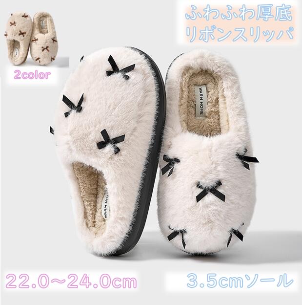 【楽天スーパーSALE全品50%OFF!送料無料】もこもこリボンスリッパ ファー 冬 ボア ファーサンダル レディース サンダル スリッポン ルームシューズ リボン ボアスリッパ 防寒 ふわふわ フェイクファー 送料無料 暖かい あたたかい 室内 冷え対策 かわいい