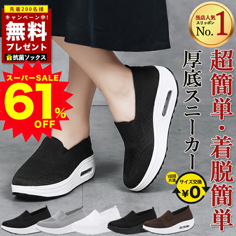 \スーパーSALE限定62%OFF!爆安価格/スニーカー レディース スリッポン 厚底 甲高 幅広 靴 シューズ 白 疲れない おしゃれ ナースシューズ 軽量 軽い レディーススニーカー 婦人靴 黒 きれいめ ウイメンズシューズ 立ち仕事 ウォーキングシューズ メッシュ