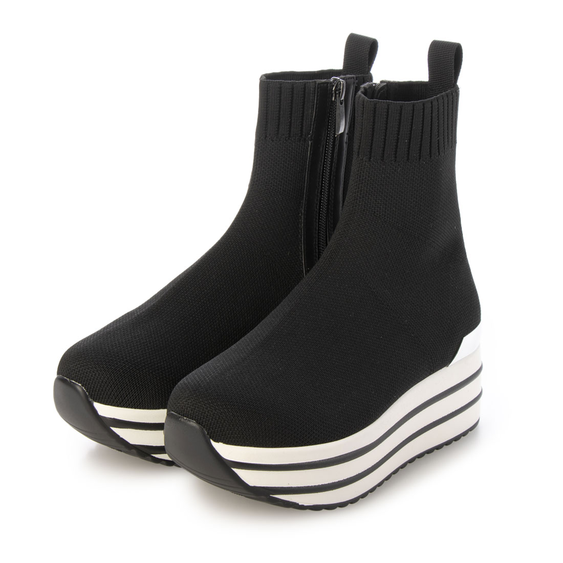【公式】【SALE/57%OFF】イーボル EVOL 軽量ニットショートブーツ ブラック 靴 レディース ショートブーツ ブーツ ショート ストレッチ ストレッチブーツ カジュアル 厚底 低身長 大きいサイズ 25cm 25.5cm LLサイズ
