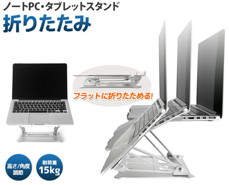 \50%OFFクーポン配布中/ ノートPCスタンド ノートパソコンスタンド 折りたたみ式 シルバー 卓上 iPad・タブレットPCスタンド 放熱設計 持ち運び 猫背 肩こり 腰痛対策 姿勢調整 アルミ合金 【在庫限り】