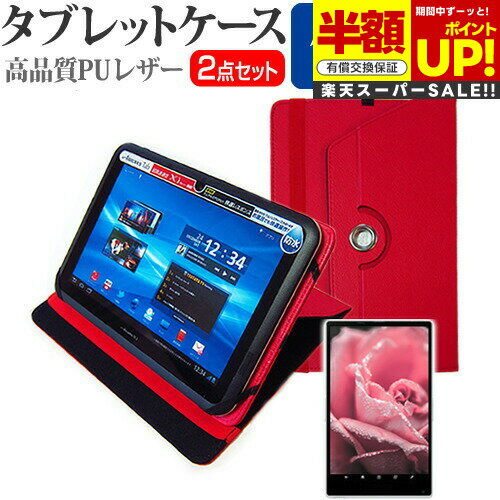 【スーパーSALE 半額 50%OFF】 Huawei dtab Compact d-01J [8.4インチ] 360度回転スタンド機能 レザー タブレットケース 赤 & 反射防止 液晶保護フィルム 互換品 有償交換保証付き