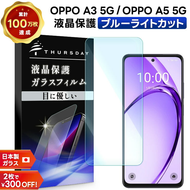 【1日は50%OFFクーポン対象】 OPPO A5 5G フィルム OPPO A3 5G フィルム ブルーライトカット Oppo a3 5g ガラスフィルム 保護フィルム スマホフィルム 強化ガラス 液晶保護 飛散防止 指紋防止 スマホ 画面保護 AGC日本製ガラス シート オッポ SIMフリー