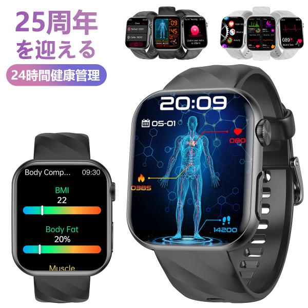 2025最新 スマートウォッチスマートウォッチ 日本製センサー 体温測定 通話機能 着信通知 睡眠 歩数計 運動管理 音楽・カメラ制御 IP67防水 android iPhone