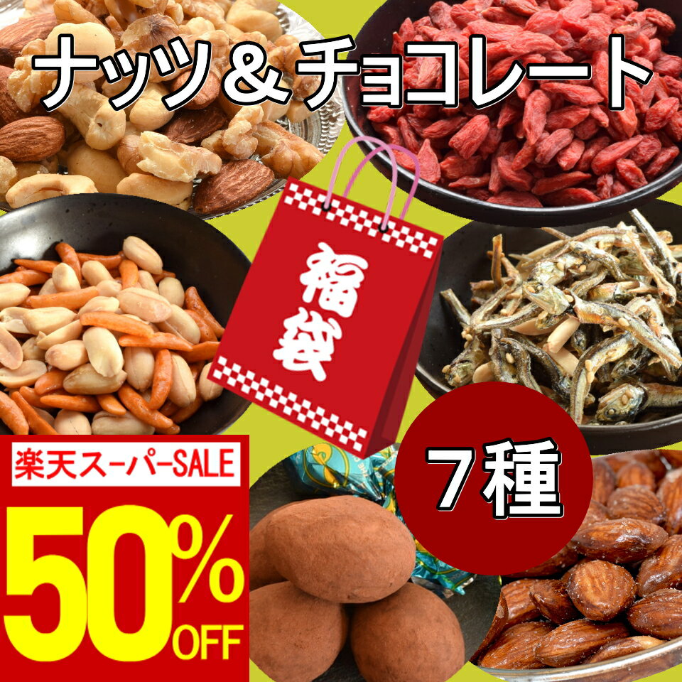 【スーパーSALE 半額 50%OFF】 福袋 ナッツ 送料無料 4種類ミックスナッツ アーモンド小魚 クコの実 柿ピー 殻付きピスタチオ 飴がけアーモンド ティラミスアーモンドチョコレート7点セット