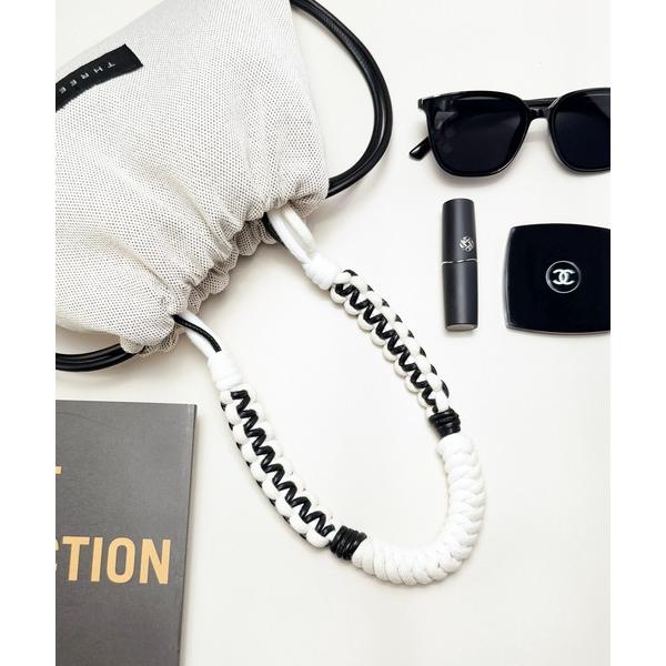 チャーム 3-1D6 MIXホワイト×PUレザー編み バッグストラップ パラコード ショルダー 個性的 レディース