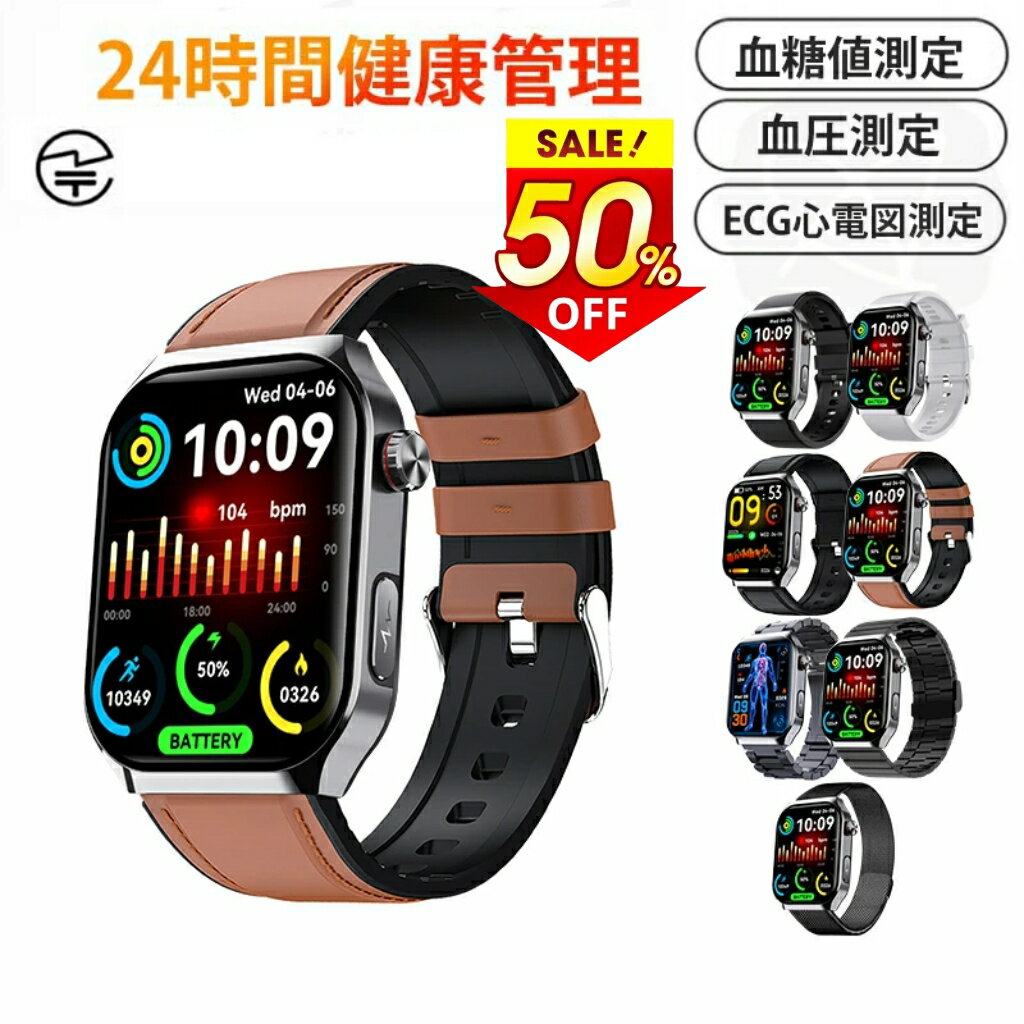【11/24 0:00 ~11/25 23:59 50%OFF→4,490~5,490円 即納可能】 スマートウォッチ 血糖値 血圧測定 心拍数 血中酸素 日本製センサー スマートウォッチ SOS緊急電話 転倒アラーム 皮膚温度測定 音楽制御 通話機能 2.01インチ 大画面 IP67レベル 日本語対応 プレゼント