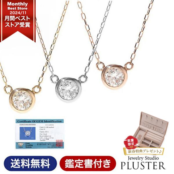 ダイヤモンド ネックレス レディース ダイヤ ゴールド 18金 k18 覆輪 フクリン 鑑定書 0.18ct アレルギー対応 シンプル プレゼント 女性 30%OFF