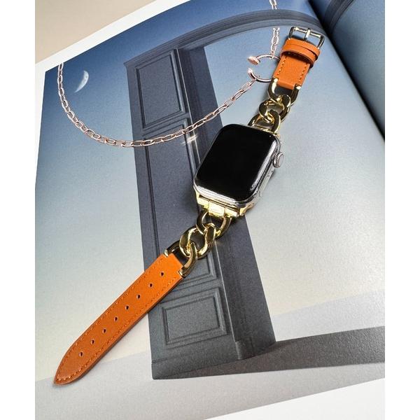 腕時計 10D18-MZ チェーン×レザー調スマートウォッチバンド Apple Watch Band 38mm 40mm 41mm レディース
