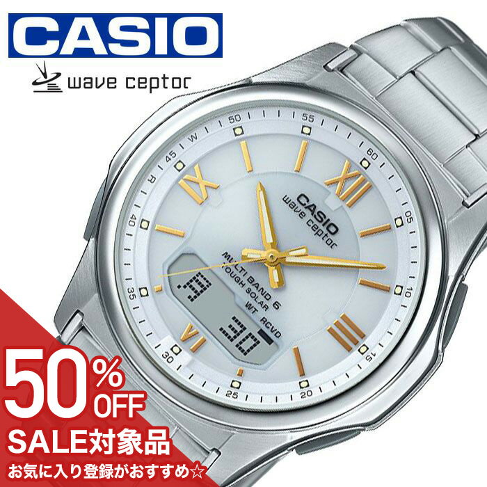 【50%OFF半額 \11,000-円引】【 父の日 1万円代で買える プレゼント 】 腕時計 メンズ ソーラー 電波 時計 電波ソーラー ソーラー電波 アナログ アナデジ メタル メタルバンド ウェーブセプター CASIO カシオ 父 お父さん 日付 カレンダー 仕事 ビジネス 見やすい 文字盤