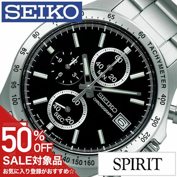 【50%OFF半額 19800円引】セイコー 腕時計 SEIKO 時計 SPIRIT スピリット メンズ ブラック SBTR005 旦那 ビジネス 仕事 スーツ クロノ クロノグラフ フォーマル 就活 高級感 防水 メタル ベルト CHGRWAT プレゼント ギフト