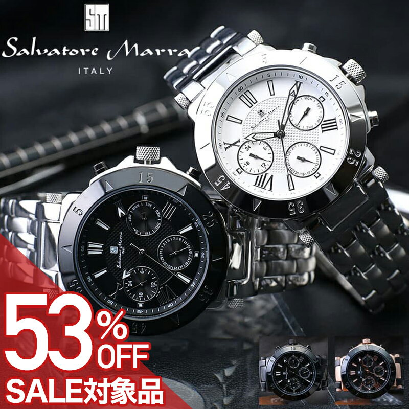 【53%OFF半額 \20,680-円引】サルバトーレマーラ 時計 サルバトーレ マーラ メンズ 腕時計 男性 父 父親 旦那 恋人 彼氏 息子 黒 ブラック 文字盤 メタルベルト ステンレス アナログ シンプル 日付 カレンダー 防水 プレゼント 記念日 誕生日 定年 成人 退職 還暦 祝い