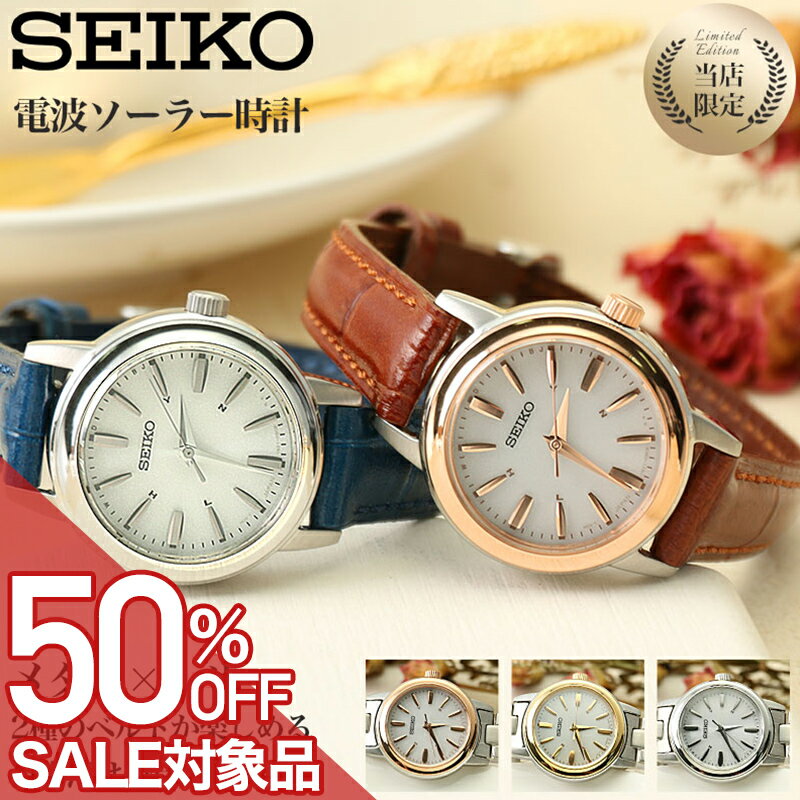 【50%OFF半額 \33,550-円引】【 当店限定 レトロ 電波ソーラー腕時計 】 SEIKO セイコー 腕時計 時計 電波 ソーラー 電波ソーラー ソーラー電波 レディース レディース腕時計 アナログ 革 革ベルト レザー メタルバンド 女性 女子 小ぶり 小さい 小さめ 華奢 細い 大人