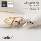 金属アレルギー対応 シンプル シルバー ゴールド ピンクゴールド リング レディース サージカルステンレス316L キュービックジルコニア V字 普段使い デイリー
