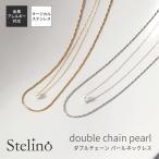 ネックレス ペンダント レディース 日本製 サージカルステンレス製 二連 ダブルチェーン パール 真珠 ドレスに合う 細小豆 スネークチェーン
