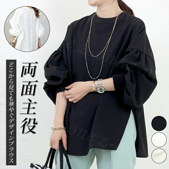 50%OFF!【1点2,825円!2点購入&クーポンで】ブラウス シャツ トップス レディース 両面主役 長袖 襟付き 新作 シャツブラウス 可愛い ボリューム袖 サイドスリット tシャツ 春秋冬 冷房対策 UV対策 おしゃれ 仕事 通勤 通学 オフィス シンプル 韓国風 人気 洗える ゆったり