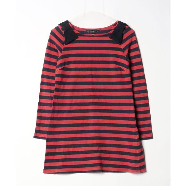 「To b. by agnes b.」 ボーダー柄長袖ワンピース TU レッド レディース