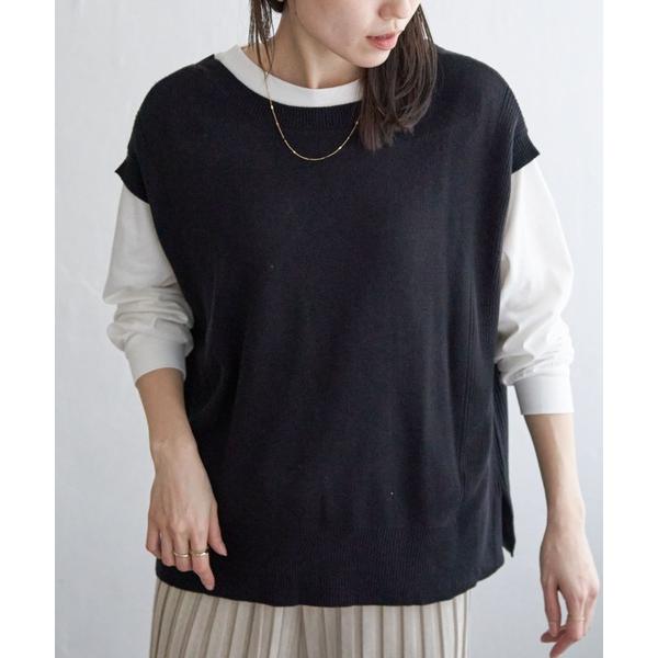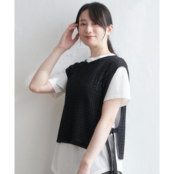【SALE/50%OFF】【S-LL/2点セット/体型カバーにも】着回しいろいろ ジレ+ロゴTシャツ SHOO・LA・RUE シューラルー トップス アンサンブル カーキグリーン ブラック【RBA_E】[Rakuten Fashion]