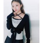 【SALE/50%OFF】リボンカーデタンクアンサンブル mysty woman ミスティウーマン トップス カットソー・Tシャツ グレー カーキグリーン【RBA_E】[Rakuten Fashion]