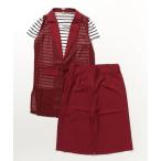 アンサンブル ノースリーブジャケットボーダーカットソーワイドパンツセットアップ