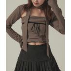【SALE/60%OFF】mysty woman リボンカーデタンクアンサンブル ミスティウーマン トップス カットソー・Tシャツ カーキグリーン グレー