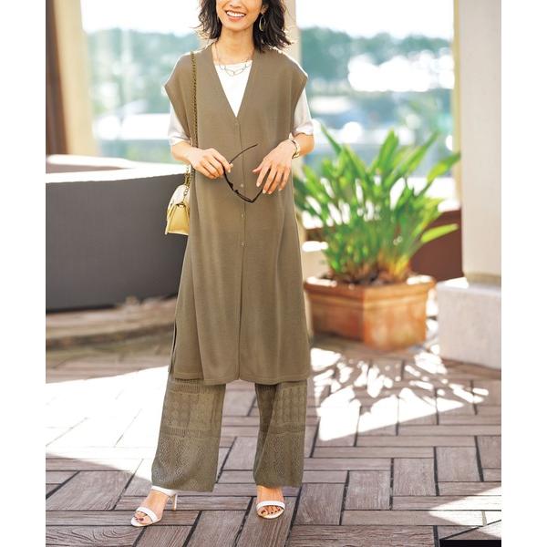 ニット セーター 透かし編みリブアンサンブルニット レディース