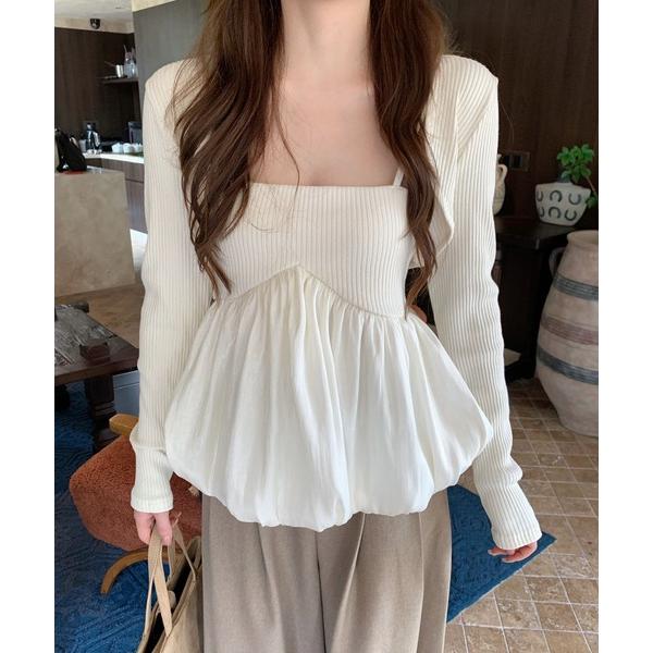 『タイムセール実施中』ZOZO問い合わせ番号:97998344ショップ:Lace Ladies,レースレディースブランド:Lace Ladies,レースレディース商品名:異素材 バルーン キャミブラウス リブニット セット...