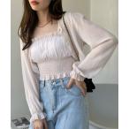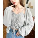 【SALE/60%OFF】カーディガン キャミソール ボレロ アンサンブル セット インナー レディース クロップド丈 キャミ 長袖 フロントリボン トップス レディース ショート丈 春 秋 かわいい おしゃれ カジュアル シンプル 着回し BLUEEAST