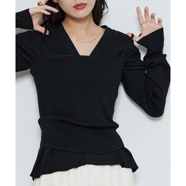 「Aresense」 ニットカーディガン フリ- ブラック レディース