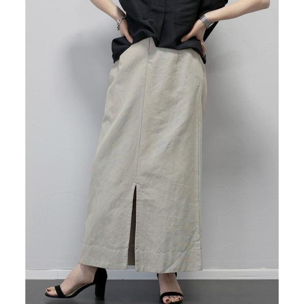 スカート コットンリネンスリットドロストスカート
