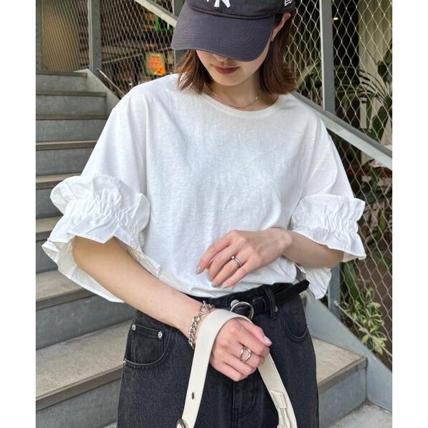 tシャツ 袖ギャザーフリルデザインカットソー レディース