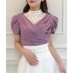 tシャツ バックカシュクールレース切替半袖トップス レディース