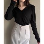 tシャツ レースVネックカシュクールリブトップス レディース