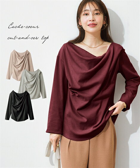 【全品対象クーポン配布中★先着100名 50%OFF★先着3,000名 25%OFF!12/4 20時開始】Tシャツ カットソー レディース カシュクール トップス 秋 ボルドー/ミルクベージュ/黒/杢グレー | S〜6L | ニッセン nissen