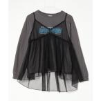 tシャツ キャミソールレイヤード風長袖ジップカットソー/ワンポイント レディース