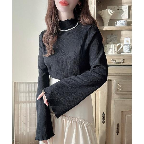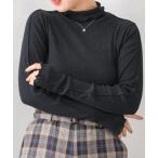 tシャツ 裏起毛メロウフリルプチハイネック長袖プルオーバー レディース